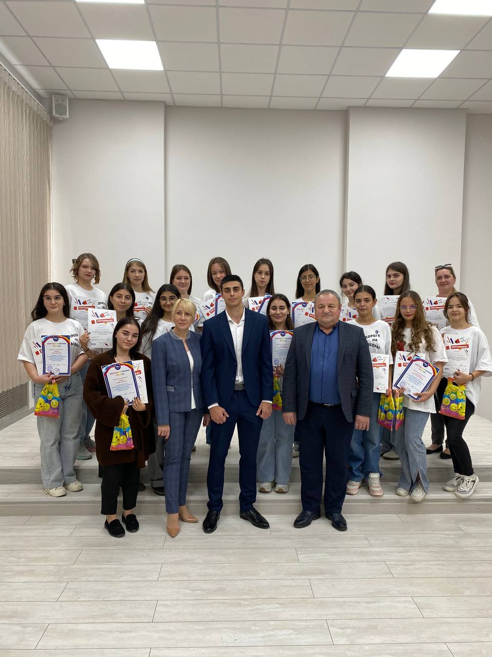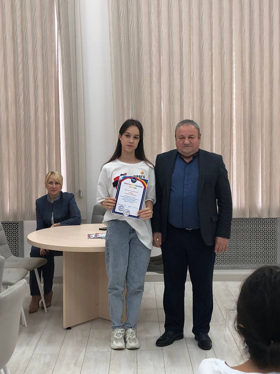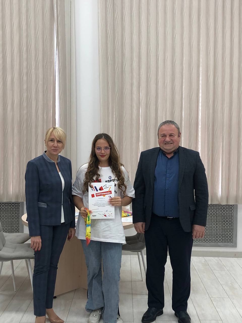 Председатель ТИК Т.В. Гизгизов и заместитель главы администрации района Л.Г. Чубарова поблагодарили юношей и девушек за проделанную работу по информированию избирателей, вручили сертификаты участника акции, почетные грамоты и памятные сувениры.